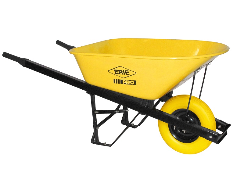 A true PRO quality wheelbarrow featuring – full 6 cu ft capacity heavy gauge steel tray, 62″ heavy gauge steel handles, premium hardware and a heavy duty undercarriage with stabilizers provides the capacity and strength for reliable performance with heavy loads. For loads up to 450lbs. Backed by a 18 month limited warranty and ERIE’s Exceptional Customer Service standard.
